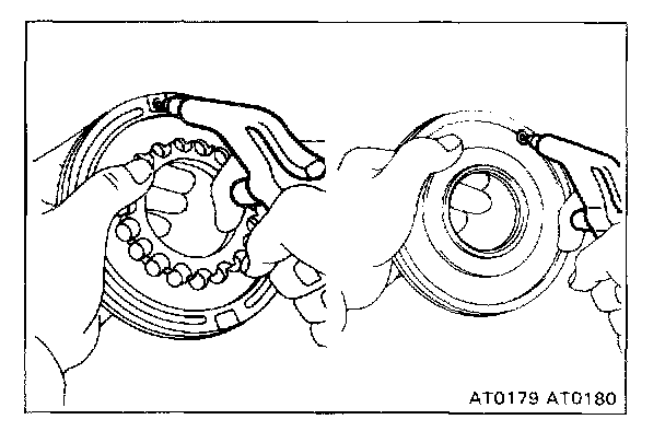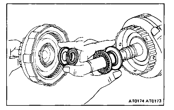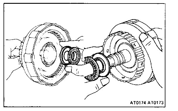 1. REMOVE THRUST BEARINGS AND RACES FROM BOTH SIDES OF CLUTCH