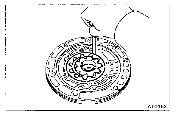 Push the driven gear to one side of the body. Using a feeler gauge, measure the clearance.