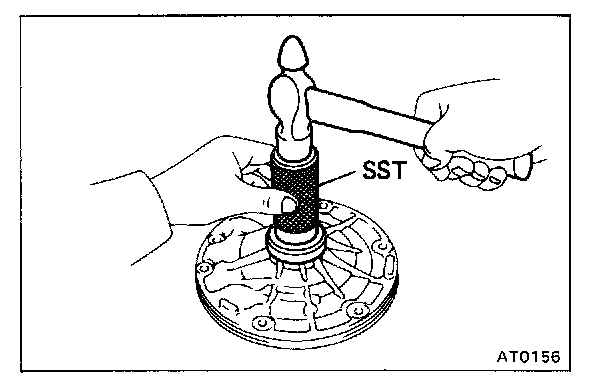 b. Using SST and a hammer, install a new oil seal. The seal end should be flush with the outer edge of the pump body.