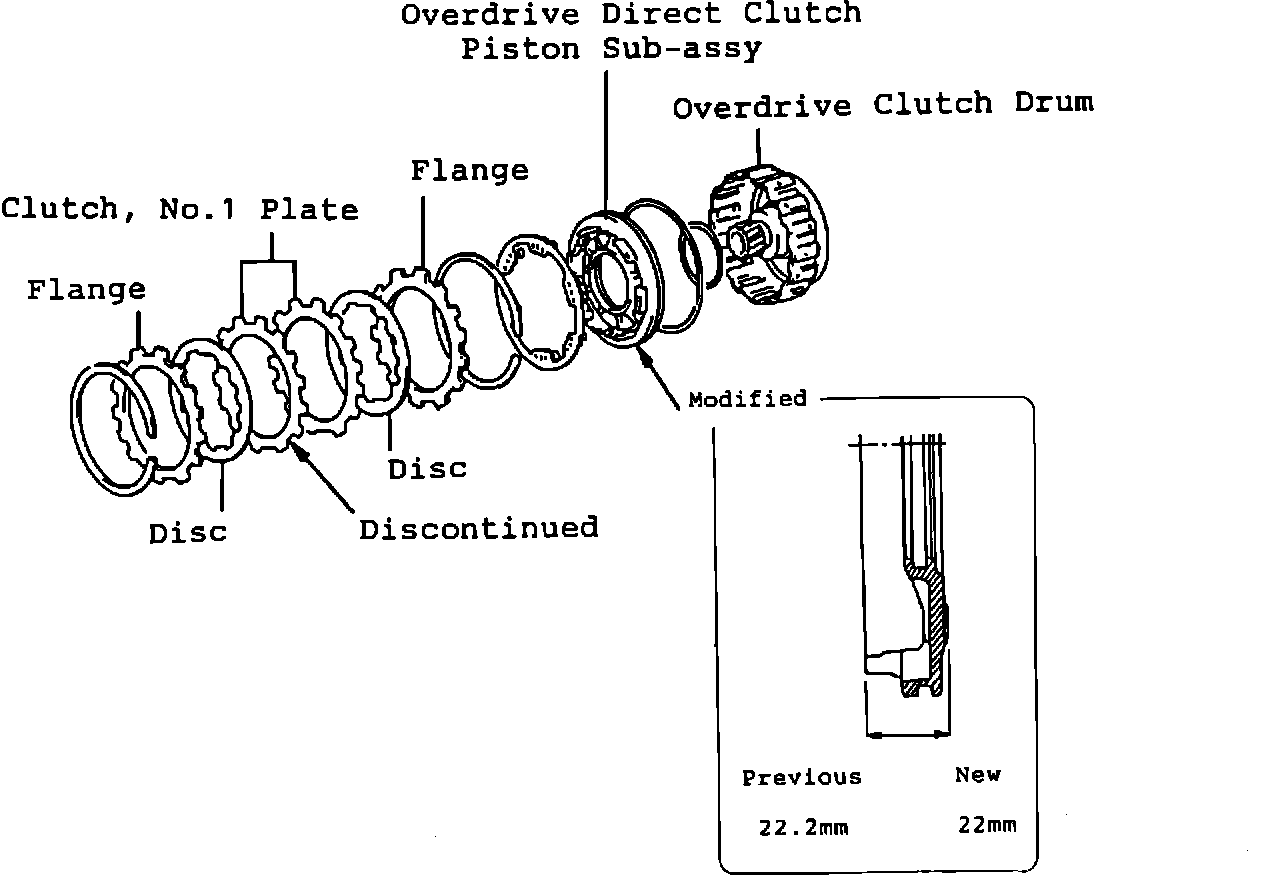 The A140E/L A/TM Overdrive Clutch has been modified as shown below. This bulletin is for parts information and production change information only.