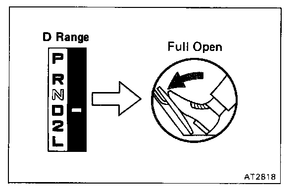 Shift into D range and while driving with the accelerator pedal held constant at the throttle valve full open, check on the following points:
