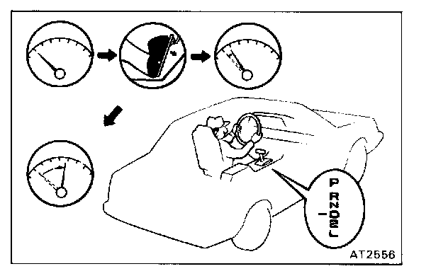 CAUTION: Perform this test at normal fluid temperature (50 - 80 °C or 122 - 176 °F).INSPECTION OF AUTOMATIC SHIFT POINT