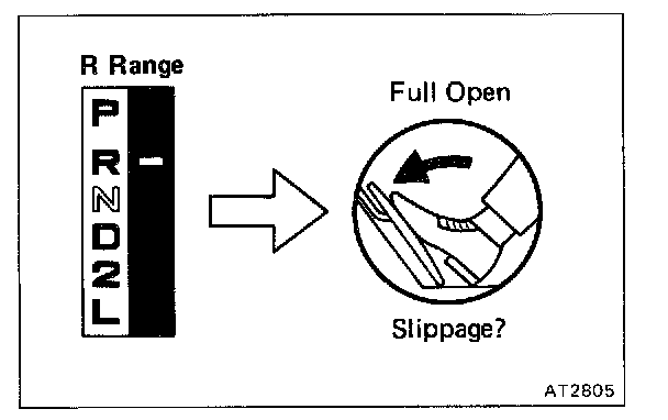 Shift into R range and, while running at full throttle, check the slipping.