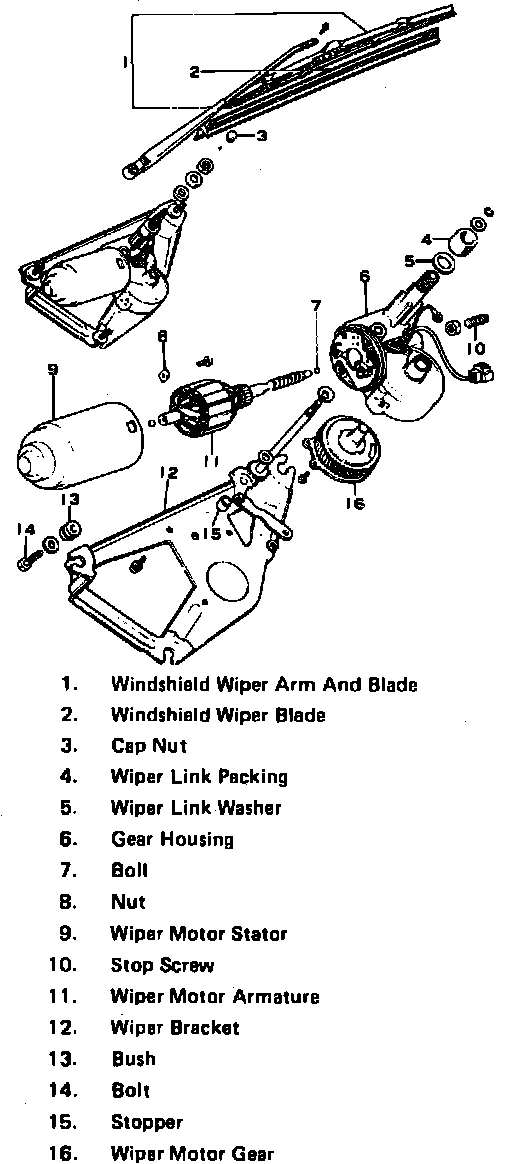 4. Remove wiper motor bracket attaching bolts and wiper motor and bracket, Fig. 4.