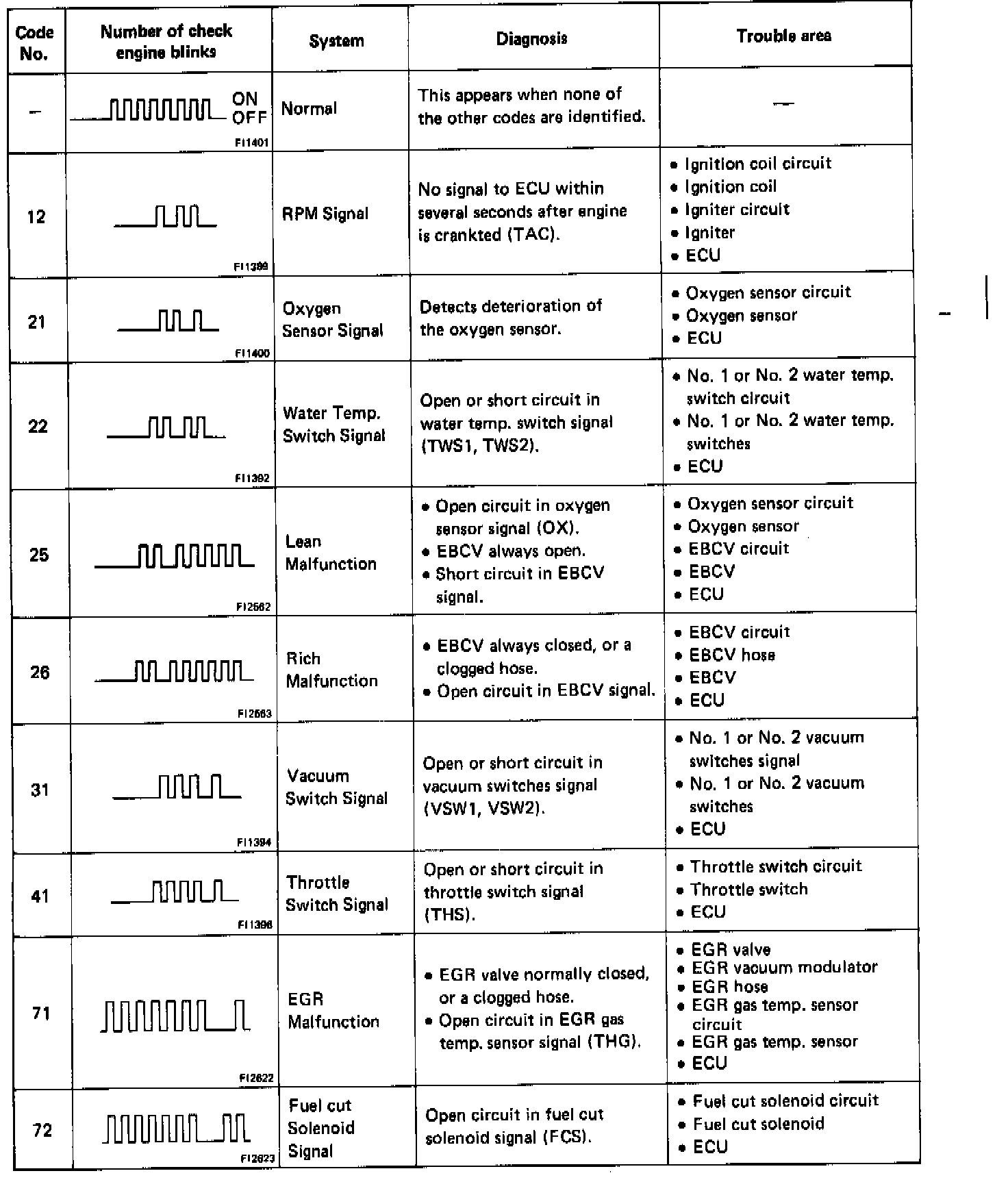 NOTE: In event of a number of trouble codes, indication will begin from the small value and continue to the larger.
