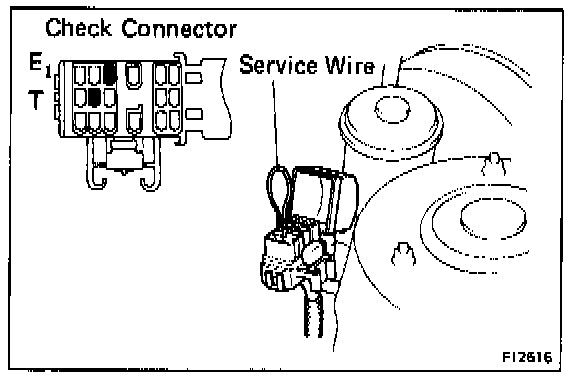 3. Using a service wire, connect terminals T and E1 of the check connector.