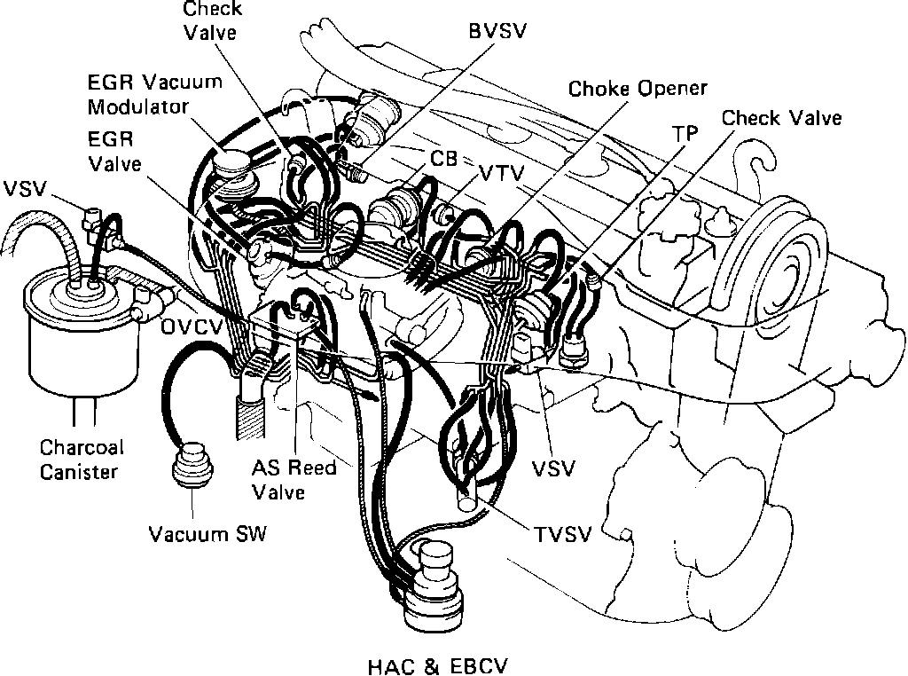 Fig. 2 Emission Components And Vacuum Hose Routing: