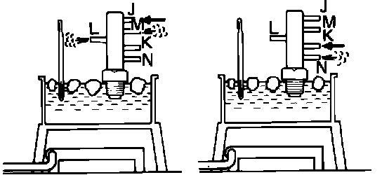 4. Check that air flows from pipe J to pipe M and L. Fig. 43