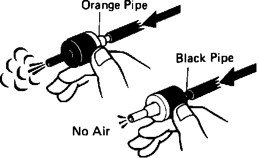 2. Blow air from the orange side of valve through the black side. Air should pass freely. Fig. 48
