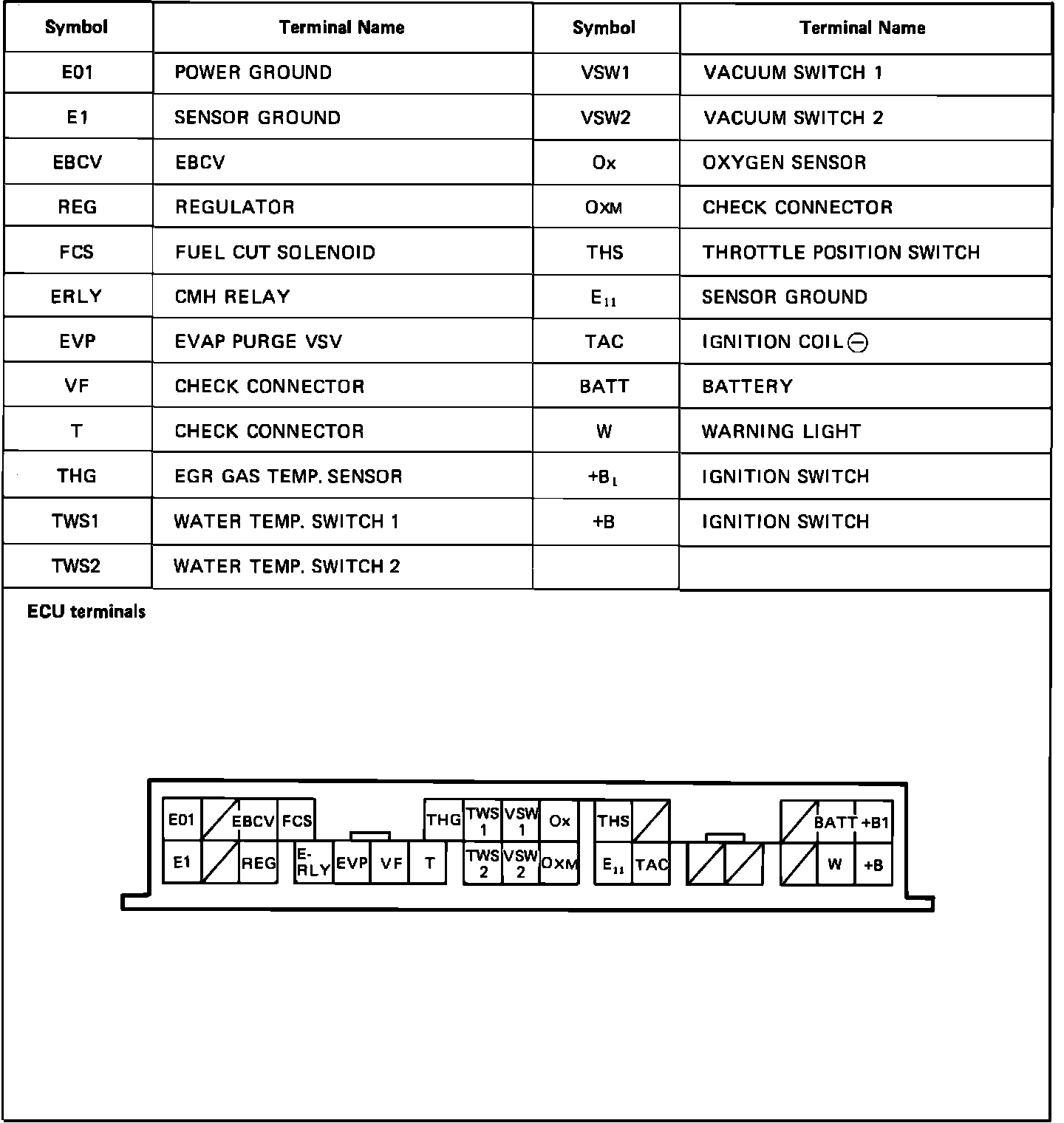 Electronic Control Unit Pin-out Locations: