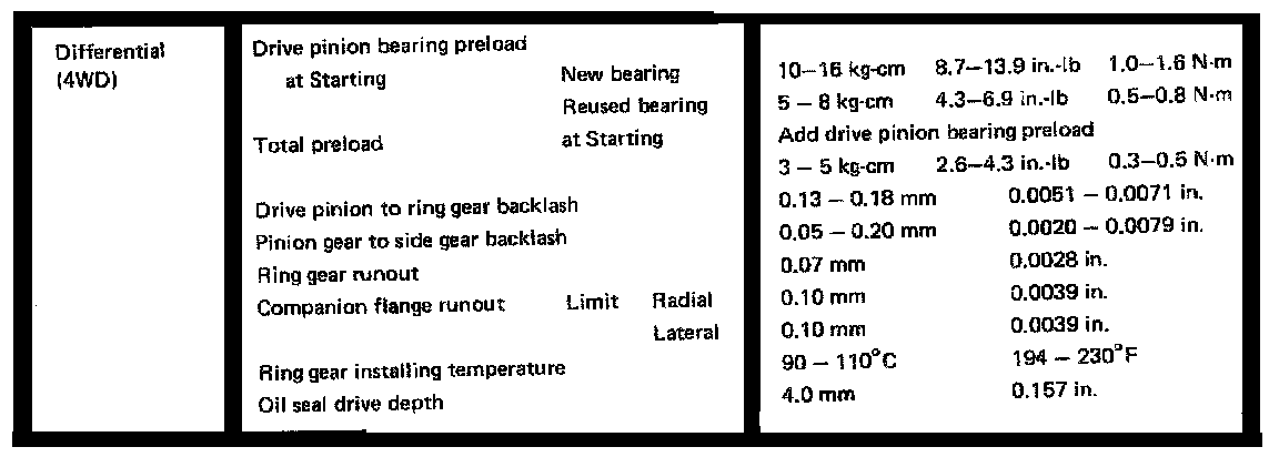 Rear Differential (4WD), Side Gear/Pinion Clearance: