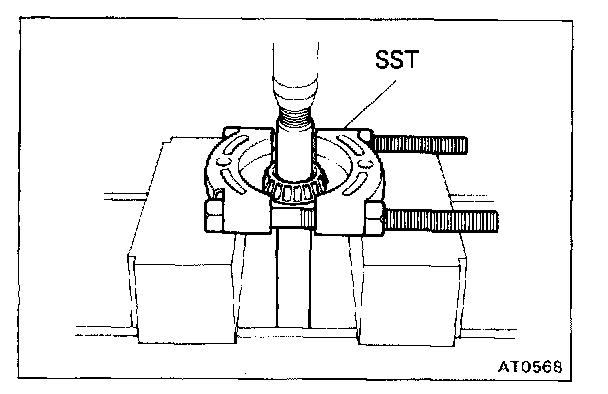 Using SST and press, remove the bearing.