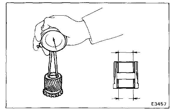 Using a caliper gauge, measure the bushing inside diameter of the planetary sun gear as shown.