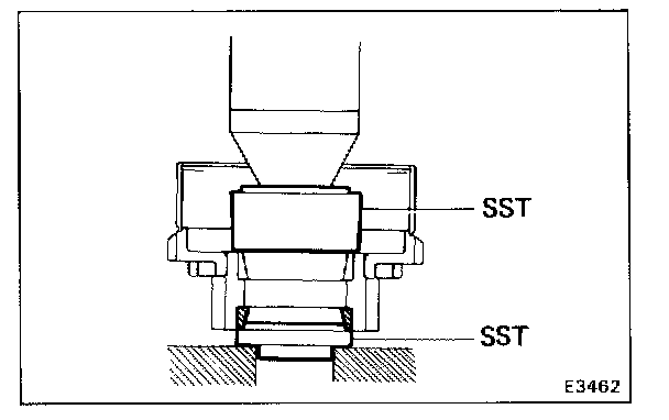 Using SST and press, press in the bearing of the thick inner race side.