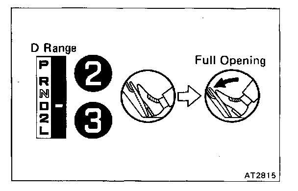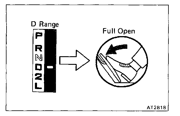 Shift into D range and while driving with the accelerator pedal held constant at the throttle valve full open, check on the following points: