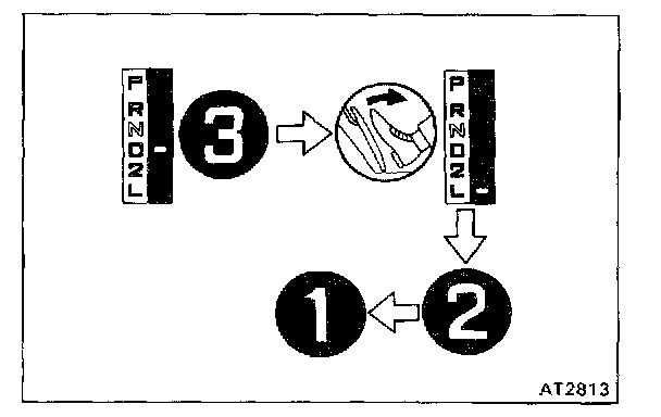 f. While running about 60 kph (37 mph) in the 3rd gear of D range, release your foot from the accelerator pedal and shift into L range. Then check to see if the 2 - 1 down-shift point conform to those indicated in the automatic shift schedule. Diagram Information and Instructions
