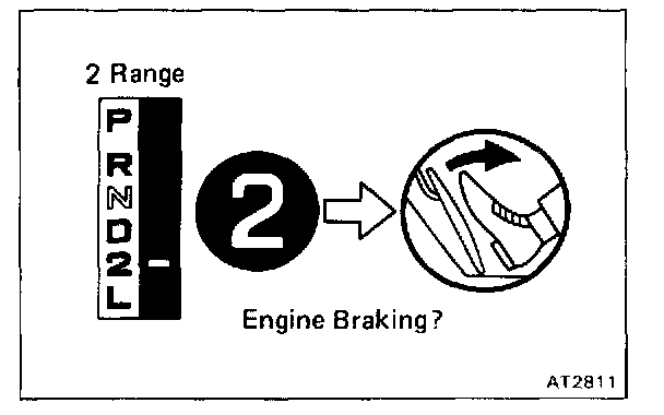 a. While running in 2 range, 2nd gear, release the accelerator pedal and check the engine braking effect.