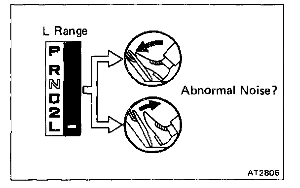 NOTE: Check for cause of abnormal noise and vibration must be made with extreme care as they could also be due to unbalance in the drive shaft, differential, tires, torque converter, etc..