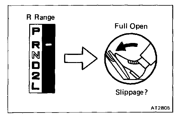 Shift into R range and, while running at full throttle, check the slipping.