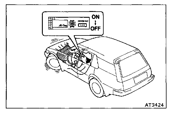 d. Confirm the shock of the center differential control operation and tight corner phenomenon by setting and resetting the center differential control system repeatedly with the center differential control switch (AUTO button).