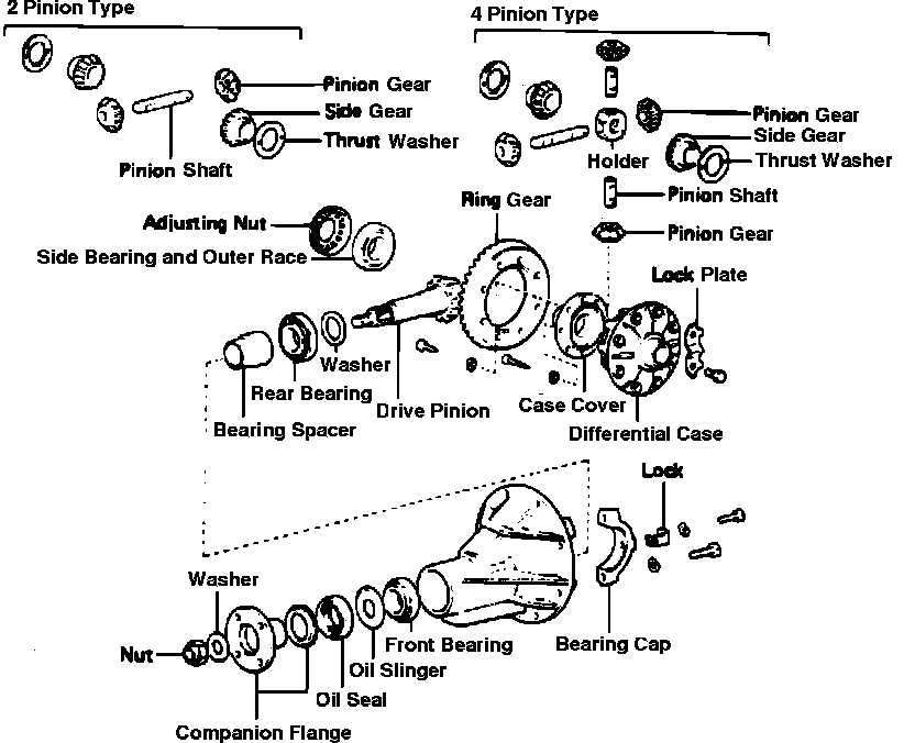 15. Disassemble 2 pinion type differential case as follows: