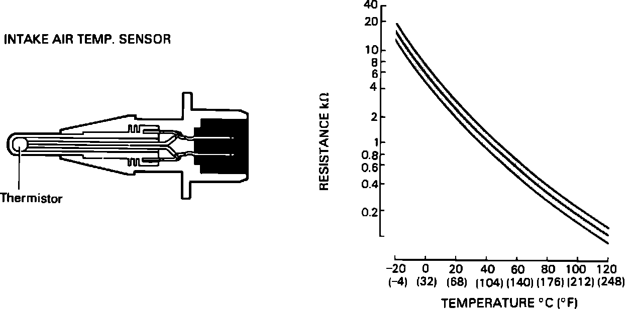 The Intake Air Temperature Sensor is mounted in the Airflow Meter on 4A-GE and in the air cleaner on 4A-FE. It measures the temperature of incoming intake (ambient) air, so the ECU can adjust injection duration. This aids with improvement in fuel atomization and decreases carbonizing within the engine. The THA inputs the ECU through terminal THA.
