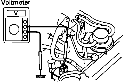 1. Ensure that all accessories are turned OFF.2. Using a voltmeter, check that the meter indicates battery voltage during cranking and for ten seconds after starting.