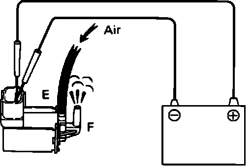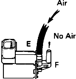 3. Disconnect the vacuum hoses to the ACV and blow air into pipe E. Ensure that NO air flows through pipe F.