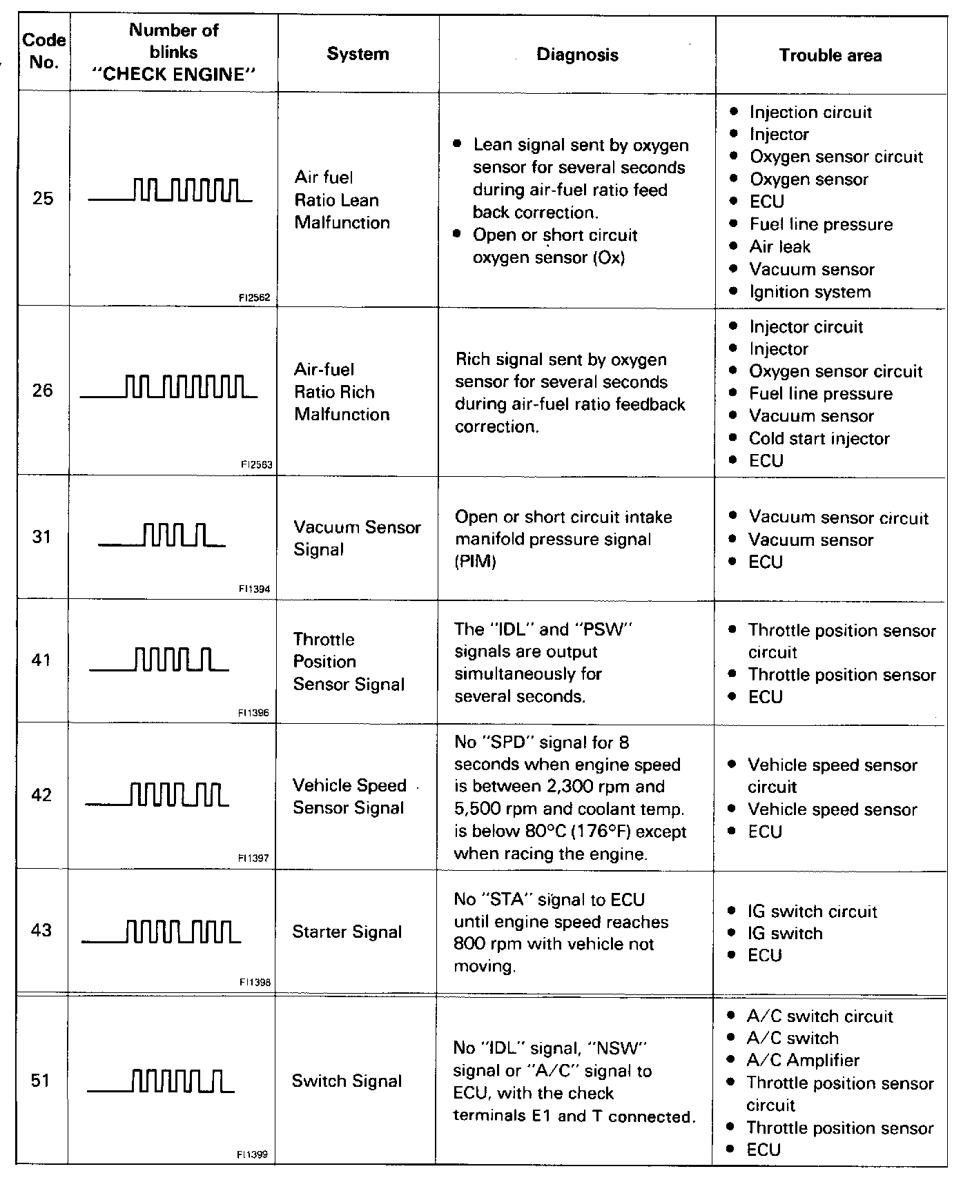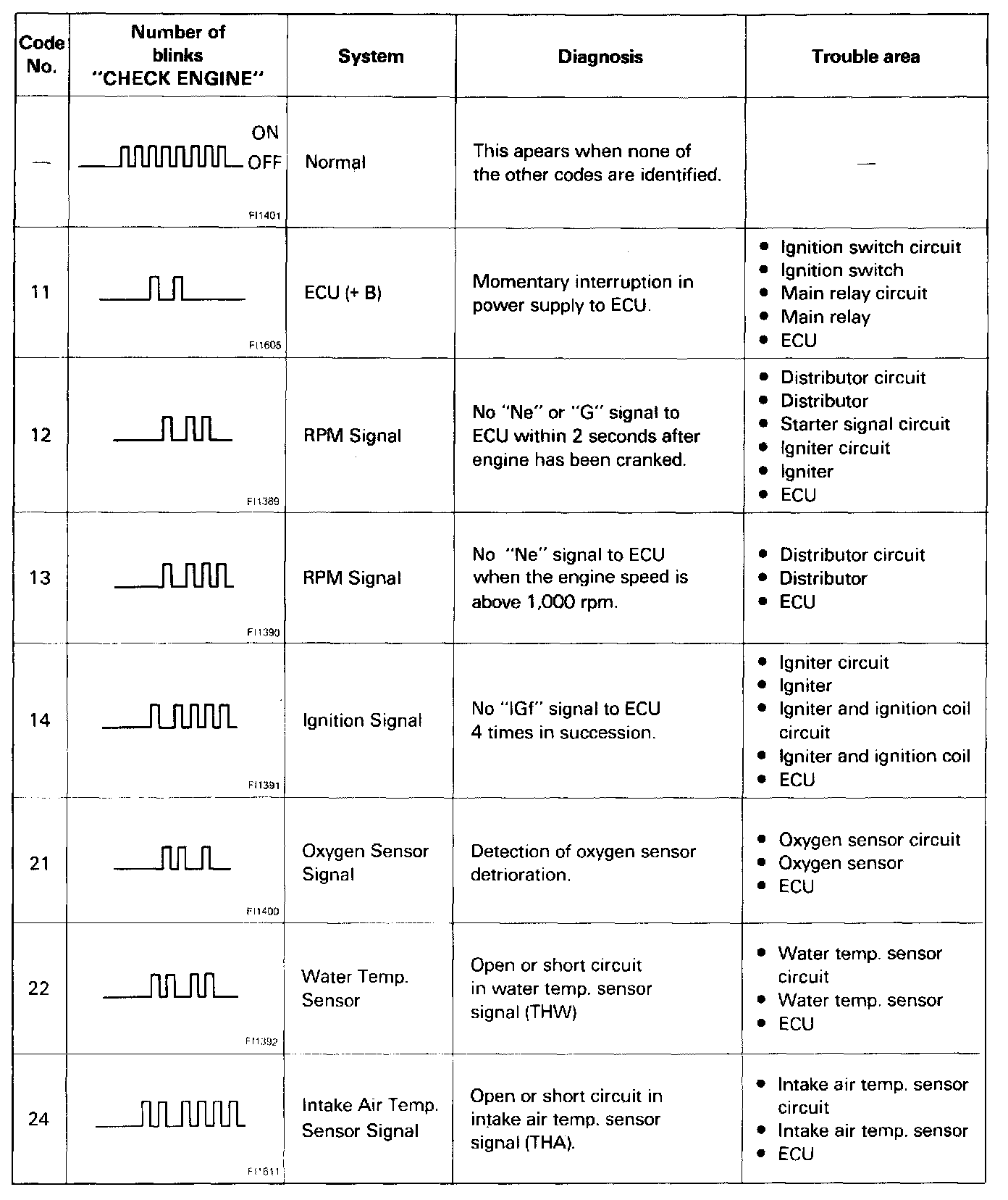 ^ The diagnostic code series will be repeated as long as the check connector terminals T and E1 are connected.