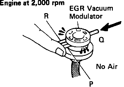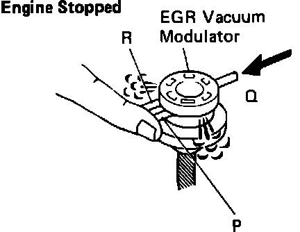 4. Disconnect the vacuum hoses from ports P, Q and R of the EGR vacuum modulator.