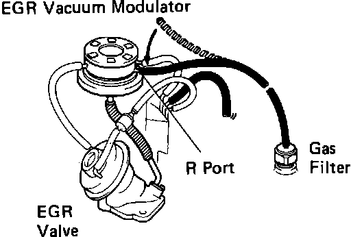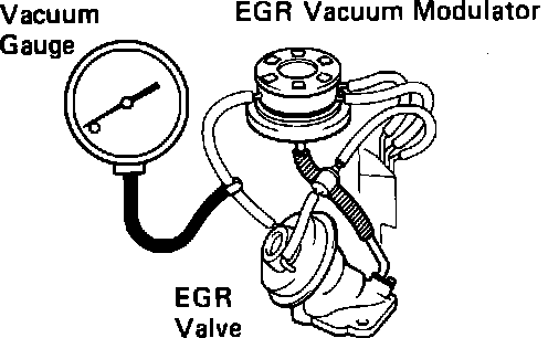 1. Using a three-way vacuum tee, connect a vacuum gauge between the EGR valve and the EGR vacuum modulator. Fig. 40a