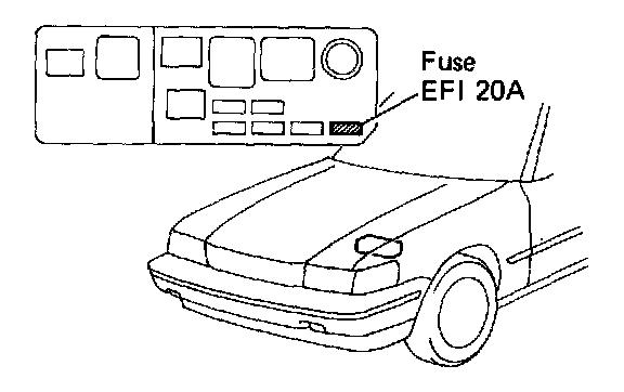 1. After repair of the trouble area, the diagnostic code retained in memory by the ECU must be cancelled out by removing the EFI fuse (20A) for 10 seconds or more, depending on ambient temperature (the lower the temperature, the longer the fuse must be left out) with the ignition switch OFF.