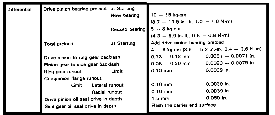 Rear Differential, Pinion Preload/Clearances: