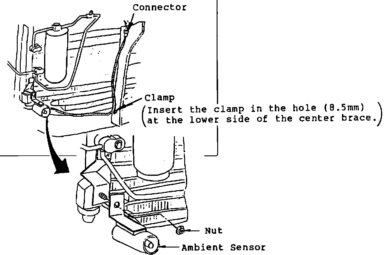 d) Install new Ambient Sensor to the lower stud of condenser and fasten with original nut.