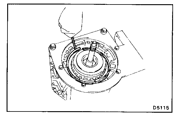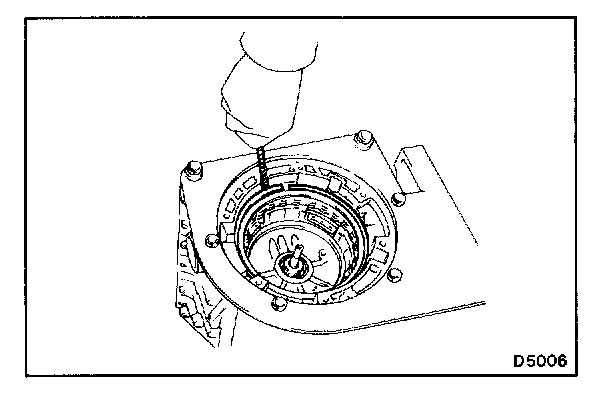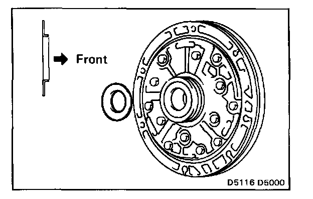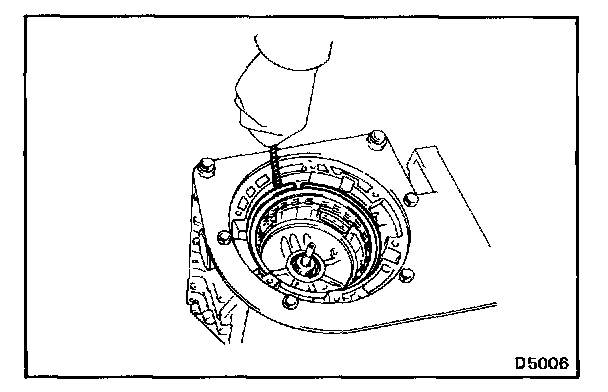 NOTE: Do not push on the oil pump strongly, or the oil seal ring will stick to the direct clutch drum.