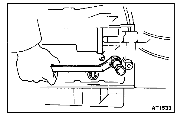 b. Insert the neutral start switch onto the manual valve lever shaft and temporarily tighten the adjusting bolt.