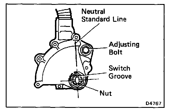 d. Align the neutral standard line and the switch groove, and tighten the adjusting bolt.