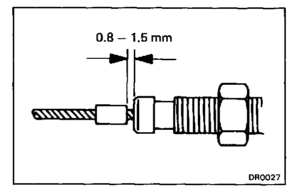 c. Stake the stopper, 0.8 - 1.5 mm (0.031 - 0.059 in.) from the end of outer cable.