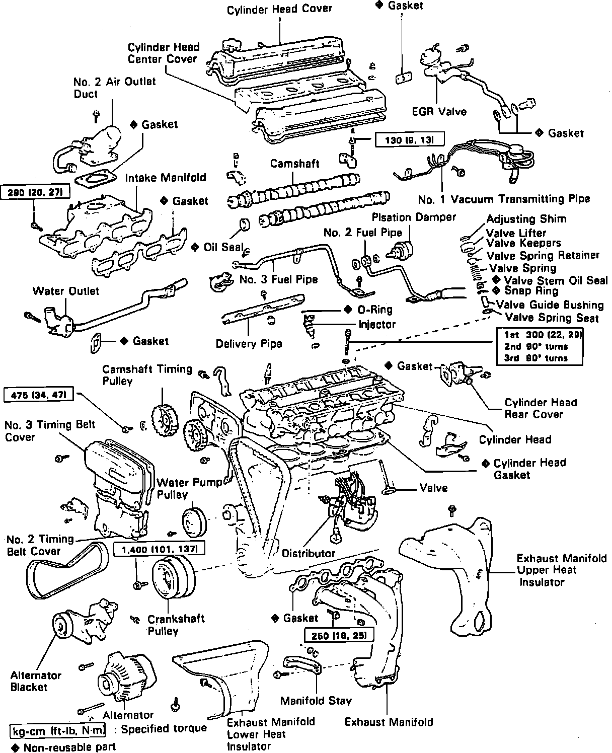 10. Remove delivery pipe with injectors, then remove water outlet with by-pass pipe and EGR valve with pipe.