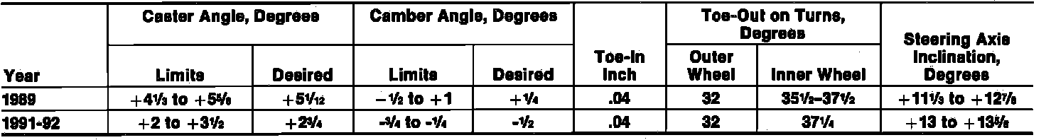 Front Whel Alignment Specifications: