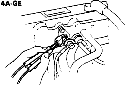8. Using a service wire, short terminals +B and FP of the engine check connector. This will cause the fuel pump to operate and pressurize the system.
