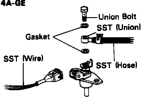 5. Using special service tools (SST), connect Cold Start Injector to the fuel delivery pipe with new gaskets and union bolt.