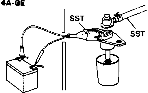14. Remove service wire from engine check connector and carefully remove SST from Cold Start Injector. Clean-up any fuel that escapes when the SST is removed.