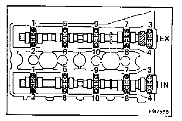 Camshaft Bearing Cap Removal Sequence: