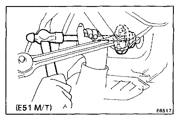 Using a brass bar and hammer, drive in the side gear shaft until it makes contact with the pinion shaft.