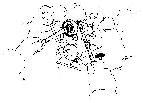 (c) Pry the pulley toward the left as far as it will go and tighten the bolt.