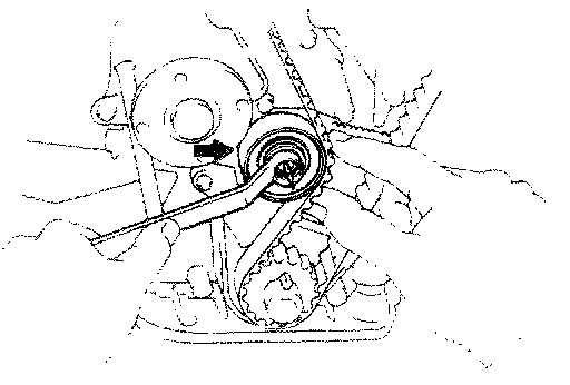 NOTE: If reusing the timing belt, align the points marked during removal and install the belt with the arrow pointing in the direction of engine revolution.