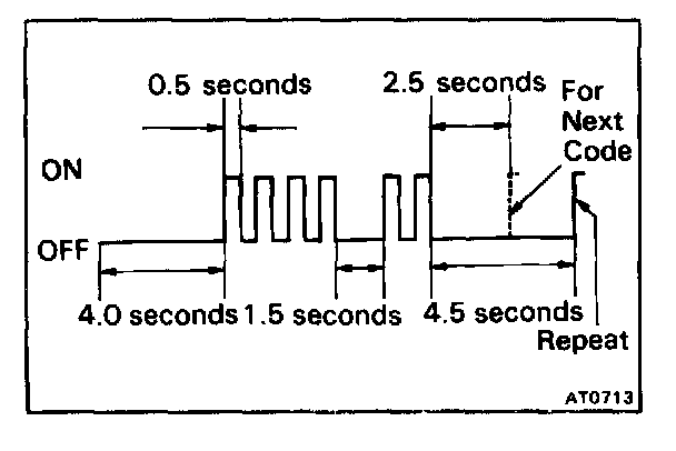 - If diagnostic code Nos. 42, 61, 62 or 63 occur, the overdrive indicator light will begin to blink immediately to warn the driver. However, an impact or shock may cause the blinking to stop; but, the code will still be retained in the ECT computer memory until canceled out.