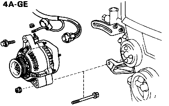 (a) Mount the alternator on the alternator brackets with the pivot bolt and adjusting lock bolt. Do not tighten the bolts yet.