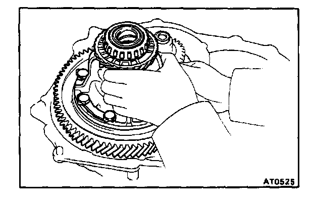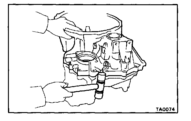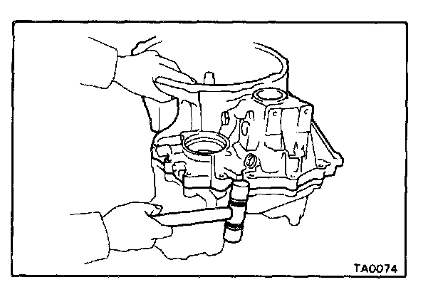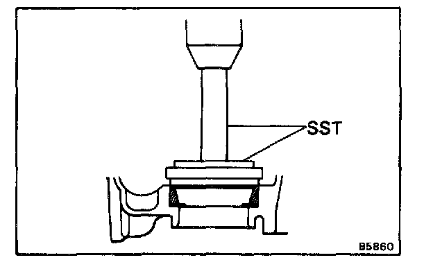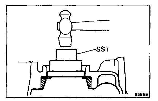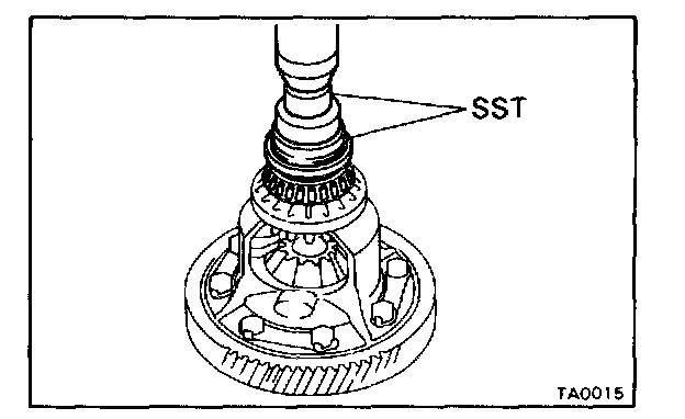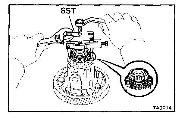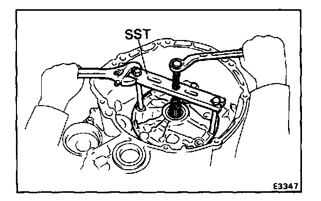 a. Setting SST to the cut-out portion on the speedometer drive gear, remove the bearings from both sides of the case.